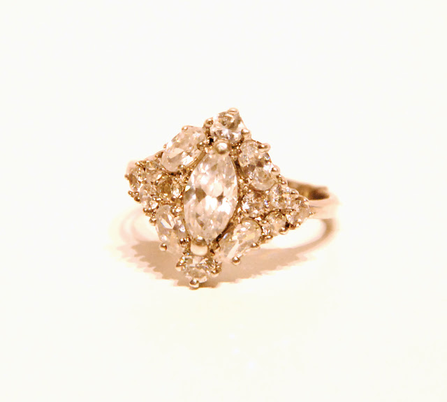 The band is solid silver and I love the marquise shaped stone in the centre.
