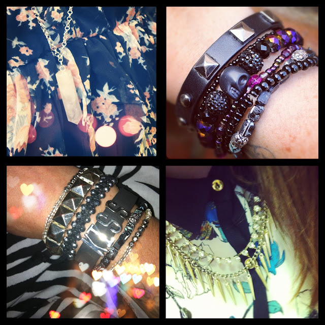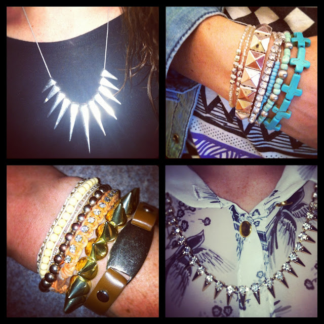 Spike necklace – Dorothy Perkins, Bracelets inc handmade by me, Spike bracelet and Leather bracelet – Ebay & H&M, Spike Necklace – H&M